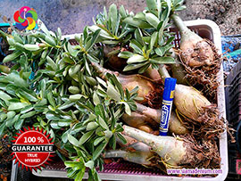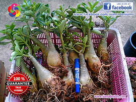 Adenium Root Stock will have more powerful when theyre getting old unlike human. Thats why we used the older root stocks with aged 3-4 years growing and caudex size with 3-4 inches caudex diameter. Our Adenium root stocks are grown naturally with Organic Media & Fertilizer, weve used Fish Fertilizer, no chemical uses. Adenium growing with chemical uses to boost up the size faster than growings nature. This is like Big Man but weak health and chemical has also give greedy habit to plants (hungry all the time). This is a big problem with importers who import Adenium growing with chemical growing.