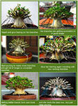 New Mixed Hybrid for making "Artificial-Bonsai Seedlings" I have tried many crossing among them for 2 years and found that seeds harvested from each parent come up with different characters. There are many seeds characters different depending on harvesting on parent herself. Seeds look like Ball Shape is the best thing which can grow with good form. Good form in my sight is up to Bonsai terms. They should be consist of nice root base, shorter caudex, brownie caudex, and symmetric branches with strong main middle stem. Please see the photo above to see them. Read more |