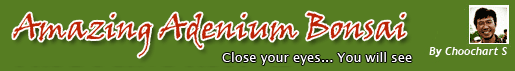 I have shared the techniques of how to produce colorful Adenium flowers many times, today I would like to change and share the idea of growing Adenium with Bonsai’s technique to make your Adenium more beautiful and attractive. The Adenium’s decoration following with bonsai guide arises from the cultural adenium’ growers to develop and build new trend to the field of adeniums including with the value added to Adenium itself. This is also to attract people to the beauty of their fascination. This beauty would come from natural Adenium’s modification to new form created by imaginative works of art and thought of Bonsai basis. Then transfer to elaborate root branches form on the basis of elements not conflict with too much from the balance of nature.