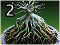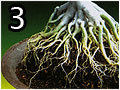 | 1. Remove Adenium from old container very carefully then spray water all over it to remove soil. You need to do very gently on the fibrous roots because they are very sensitive. 2. Make it dry by hanging in the shade about one week so you can repair the tie roots easier. You don’t need to finish this by one time. If you feel roots tie very hard, you can dry it one more week then you can notice roots will get more loose and easier to do again. 3. Make root more spread as much as you can. You can use the chopstick or toothpick to fibrous roots to order them. For the bigger ones, you can use foam cut as triangle or cubic shape depending on room between each root’s positions. You can also cut the unnecessary roots or wrong roots’ positions with clean and sharp razor. After that, spray your Adenium all over with fungicide chemical to protect rotten roots after repotting. Then hanging it one more day and make sure it dry. Now it’s time to grow it with new container or pot. Media Preparation – We separate the media in 2 parts. The first one is rough media using for normal growing and the second one is powdering media using for surface’s decoration to roots. Put the coconut chunk about ¼ of container or pot height then put the rough media until ½ of container height. Make the media like mountain higher than container border around 2-3 inches. 4. Put the Adenium carefully on it at the center of container and arrange root to spread with order from top of mountain straight to container’s border as much as you can. 5. Use the powering media to cover all the roots very gently. 6. Water your Adenium with fungicide chemical from top to all media and make sure this solution flow out of container bottom. Now your Adenium and new media are free of disease. Now your Adenium leaves might become yellow and fall. Don’t worry; this can happen with changing adenium with new media changing because Adenium is not get used to with it. Then put your Adenium in the shade until you see new small leaves coming up. Now you can take her to outdoor to get full sunlight. You should use the cotton bag to cover the media again to protect burning on fibrous roots. Of course, fibrous roots can make your adenium more attractive when they are getting bigger. This is just general idea about Adenium root’s arrangement. There are many things beyond this and I am pretty sure you will have fun with it. Take care and have a nice day. |