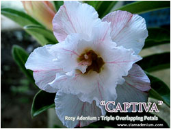 | always thought the specific characters from mother could be shown on the second generation from crossing again. This was the most exciting part with Adenium’s developing. On ending of 2008, we started developing new multi-overlapping Adenium or we called “Rosy Adenium”. Our first release of Rosy Adenium on that time was “Petch Chom Poo” came from crossing between “Diamond Dust” and “Rosy Adenium : Dox Xon” (Originally found by my good friend, |